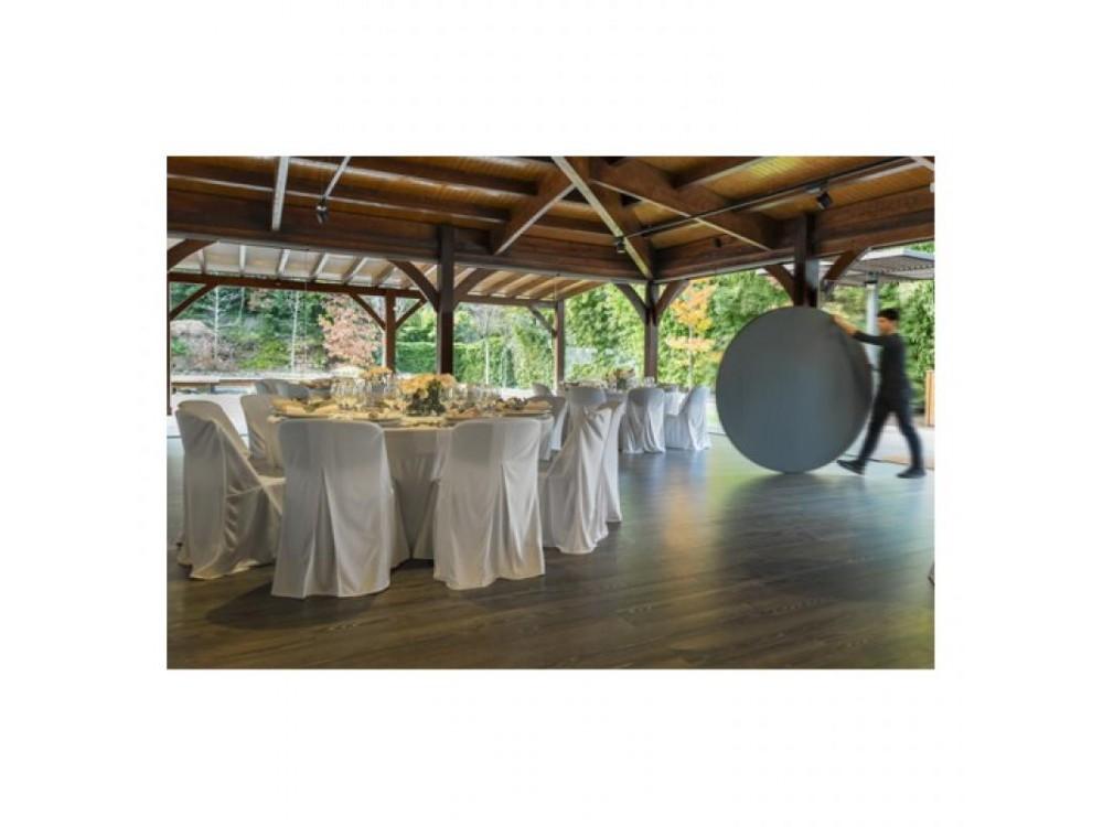 Der klappbare Banketttisch PLANET 150 ist aus Stahl mit Pulverbeschichtung. Die Tischplatte ist aus hochdichtem Polyethylen gefertigt.