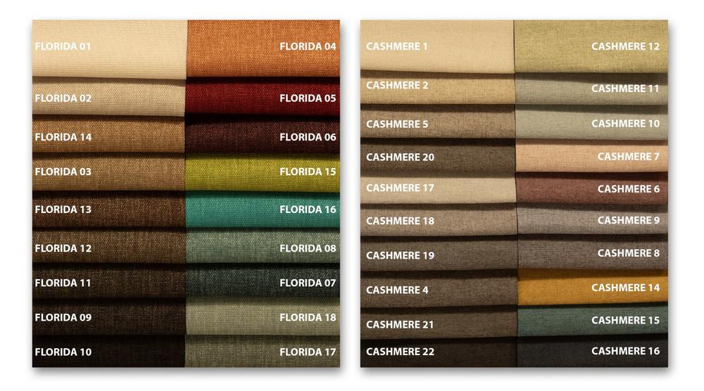 Bezug Florida: Abriebfestigkeit: 160.000 Zyklen, Zusammensetzung: 100% Polyester, Gewicht: 510 g/bm, Teflonausrüstung für einfache Reinigung