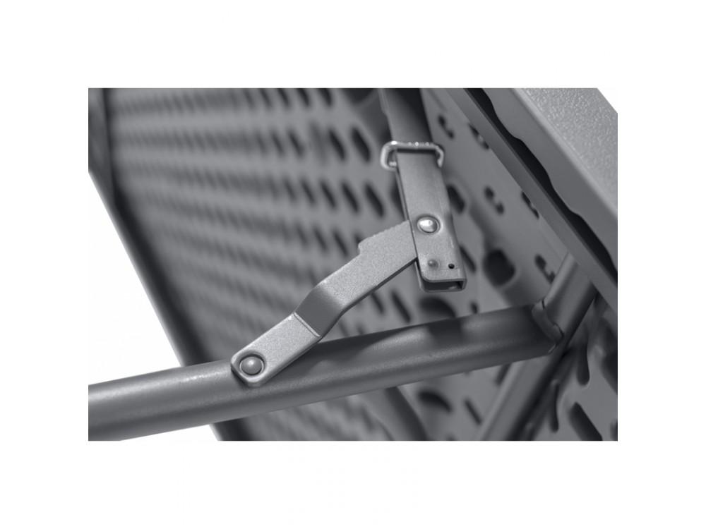 Kann in Längsrichtung mit anderen Tischen verbunden werden. Die manuelle Verriegelung und der Gleitring sorgen für eine größere Stabilität des Tisches.